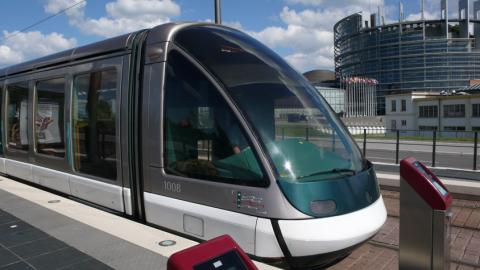 1031 mit den Gebäuden des Europäischen Gerichtshofs für Menschenrechte im Hintergrund