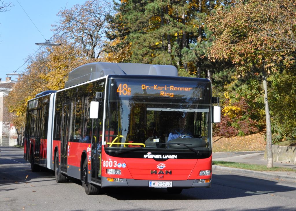Bild 1 zeigt 8003 auf Linie 48A in der Spiegelgrundstraße.