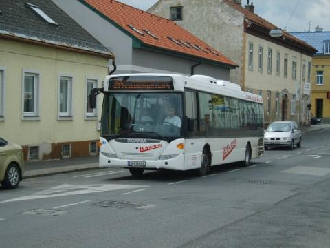 Das zweite Bild zeigt einen der beiden nur relativ kurz bei Lenardin beheimateten (ein Jahr etwa) Scania Omnilink in der Leopoldigasse auf der Linie 255.