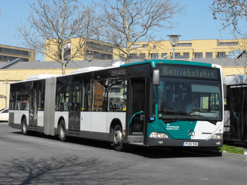 den Citaro gibt es auch als Gelenkbus. Wir sehen den 941 mit Werbung und den
