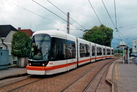 In der Gegenrichtung wurde der werbefreie Wagen 006 an der Haltestelle