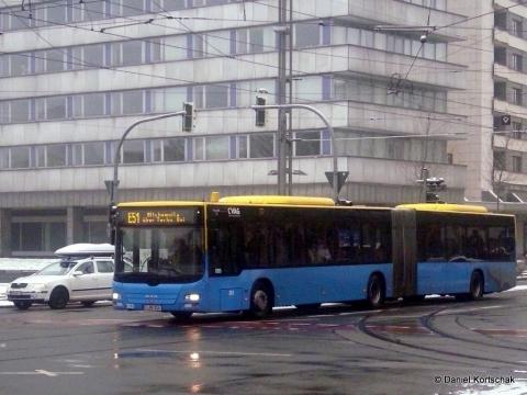 auch ein ausgedehntes Busnetz, in dem Gelenkwagen von MAN und Mercedes