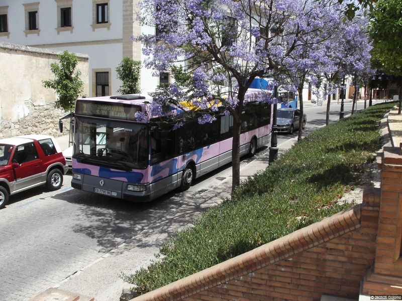 Was ist an der Farbe rosa abartig? Diese Farbe ist doch großartig. Sie fällt auf. Und mit ein paar lila Absetzungen bringen sie noch interessantere Einblicke in die Auffälligkeit. Da fällt mir ein, dass ich schon lange nicht mehr in Jerez de la Frontera, wo dieser Renault Agora von Cojetusa mit der Wagennummer 51 an lilablühenden Bäumen seine farbliche Schönheit präsentiert.