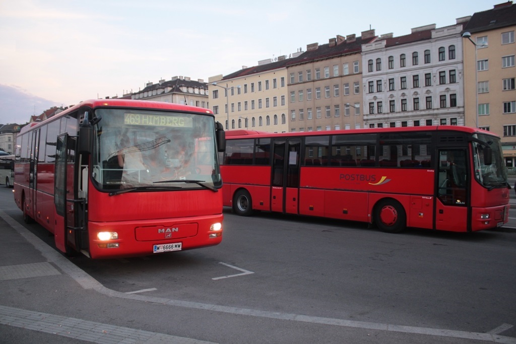 ausnahmsweise mal den älteren MAN A01 ex Postbus mit dem kuriosen Kennzeichen W 6666 MW.