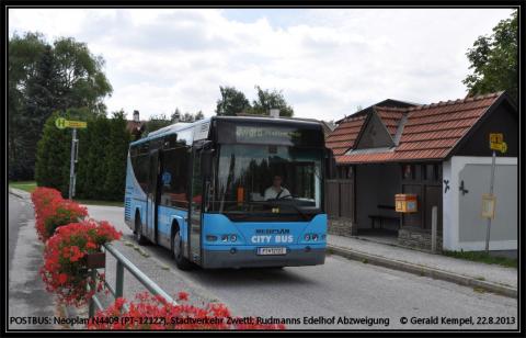 - 01: der Neoplan in der Bedarfshaltestelle (BEHA) Alpenlandstraße. Manche Haltestellen