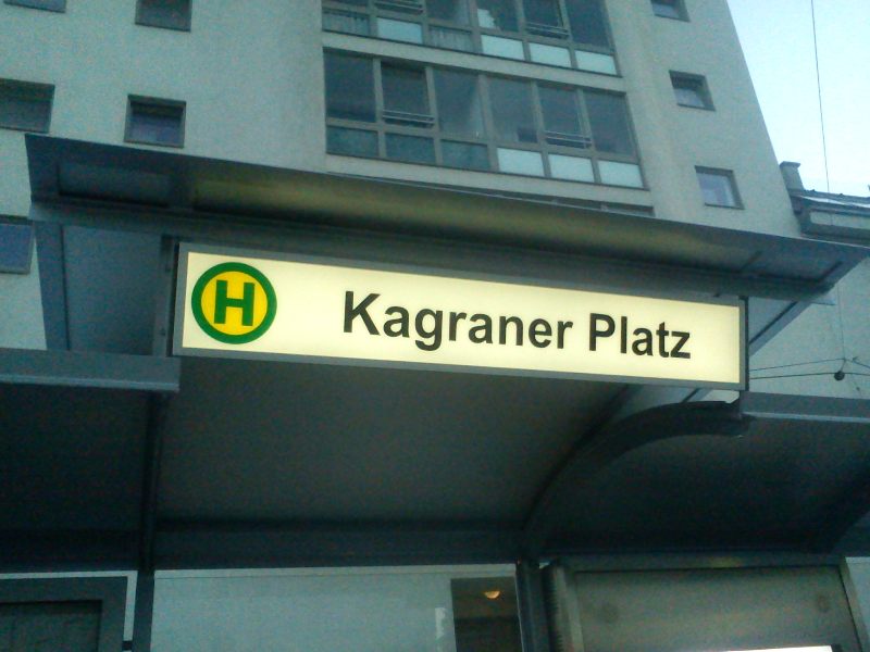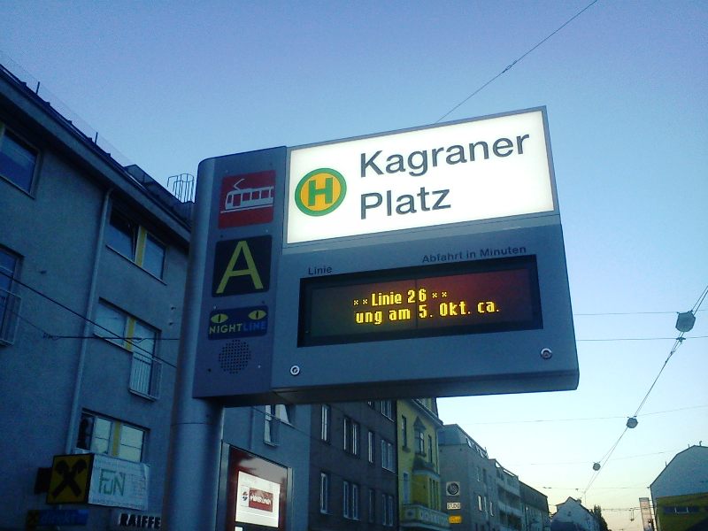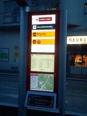 Weiters ein viel größerer Fahrplan und Linienanziegen, alle hinterleuchtet auf einer Säule.
