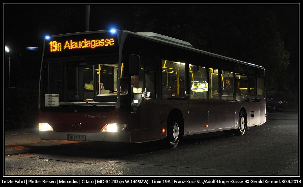 Die Fotos zeigen die allerletzte Pletter Linienbusfahrt. Zum Einsatz gelangte der Citaro MD-312 ID, der bis vor