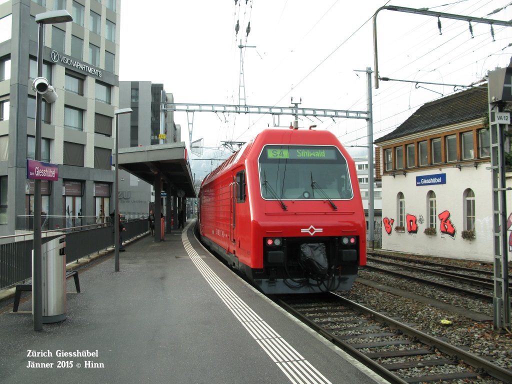 Eine S4 (Sihltalbahn) hält in Giesshübel.