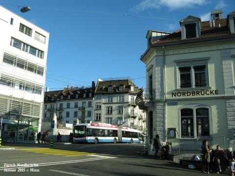 Ein Swisstrolley hält gerade auf der Nordbrücke.