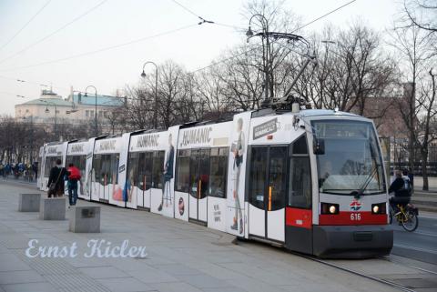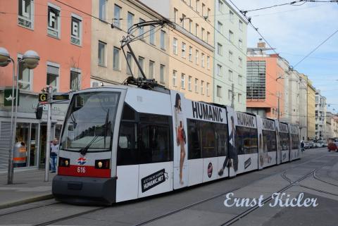B 616 mit Werbung für HUMANIC auf der Linie 6 und der Linie 71