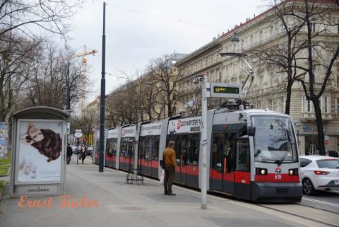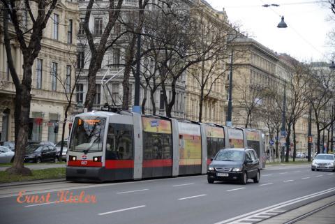 Bild 1 zeigt den B 607 als Linie D auf den Schubertring.