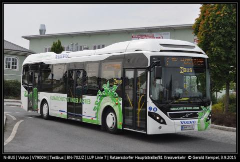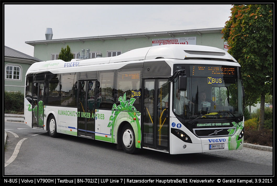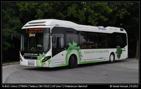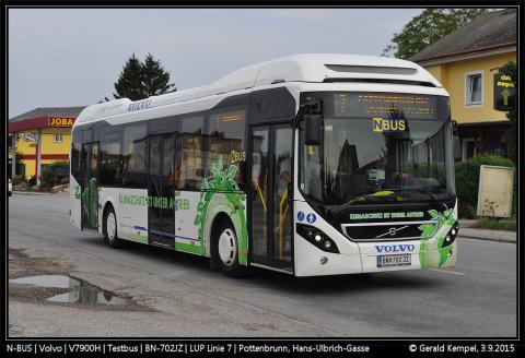 Die Fotos zeigen den Testbus auf der Linie 7 im Raum Pottenbrunn bei St.Pölten, sowie bei seinem
