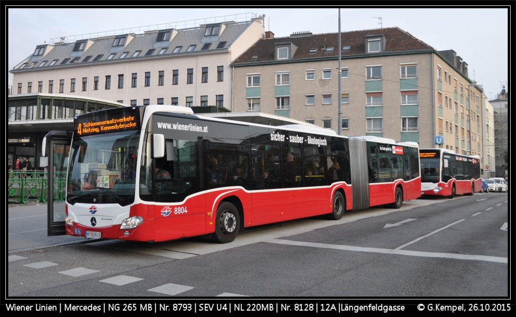 - NG 8804 und NL 8128 der Linie 12A bei der Längenfeldgasse. Der (kurzgeführte) 12A hielt seine Ausgleichszeit in der