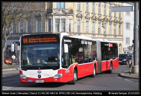 - 8746 an der Kreuzung Schönbrunner Schloßstraße#Grünbergstraße. Es ist ein "Spetter-Bus" mit richtigem Liniensignal