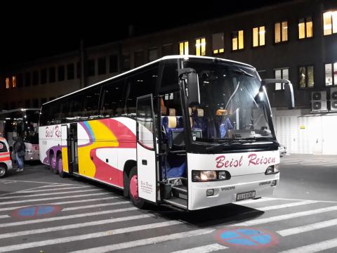 * Ein Nachtfoto von einem Bus, der Asylanten von Spielfeld nach Wien Westbahnhof brachte