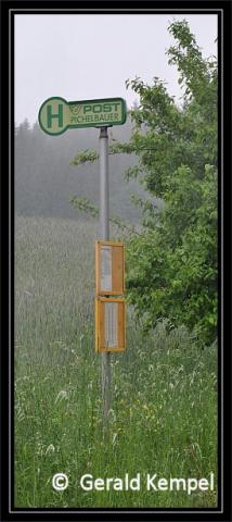 ehem. Bundesbus-Löffel), sowie (nicht sichtbar, da auf der anderen Seite des Wartehäuschens