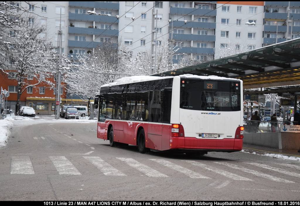 Das erste Foto zeigt den Bus 1013 ankommend am Salzburger Hbf.