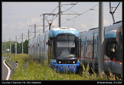 - Cityrunner Nr. 005 als kurzgeführten 3er (3*) bei der Endhaltestelle Doblerholz. Jeder