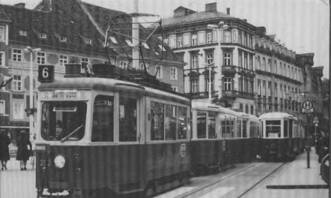 Südtiroler Platz Richtung Hauptbahnhof mit zwei Beiwagen gesehen.
