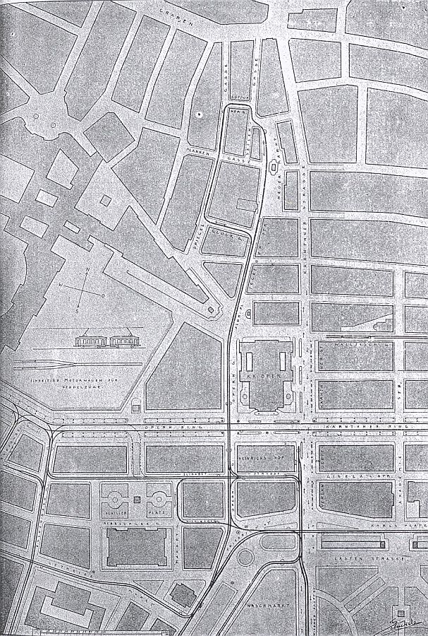sah Schurda eine Schleife am Neuen Markt vor, wobei die benutzten Nebengassen