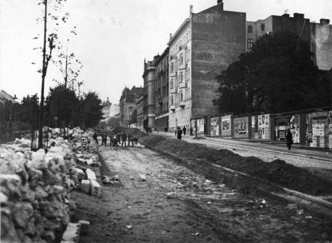Sie zeigen die Bauarbeiten anläßlich der Umlegung der Gleise von der Wallgasse
