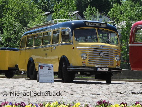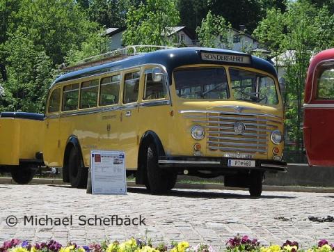 aus Österreich der Chrustschow-Bus und der Steyr 480a von 1958 ausgestellt.