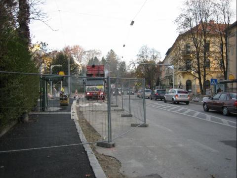 Morellenfeldgasse (am Foto jene Spur, die eingezäunt ist) wird