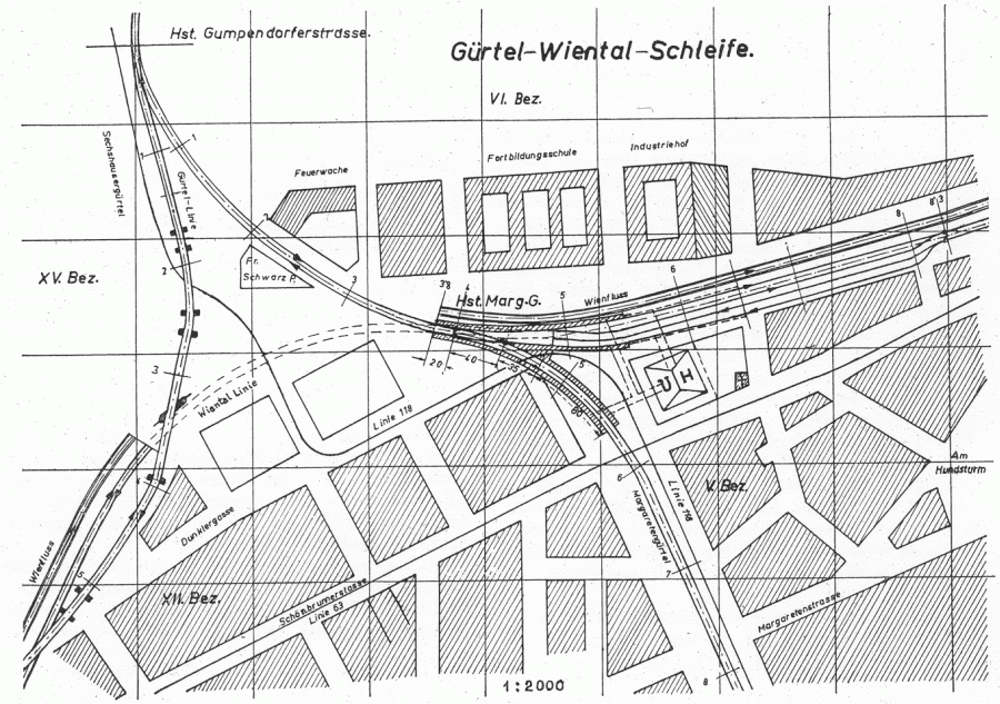 > Gürtelbogen mit Donaukanallinie in Tieflage.