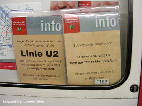 Für die Einstellung der Linie U2 am Osterwochenende gibt es auch erstmals