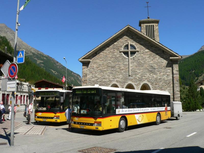 Saas Fe und des Anschlußkurses nach Saas Almagell, beides Setra S315NF