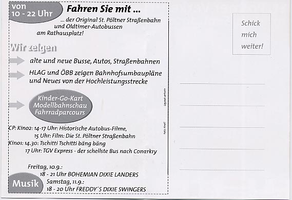 CameraC4100Z,C4000ZExposure1/800sExposure ModeAutoExposure ProgramProgram AEFlashFlash did not fire, auto modeFocal7mmMakeOLYMPUS OPTICAL CO.,LTDOrientationHorizontal (normal)Scene ModeStandardWhite Balance ModeAutoF-Number50/10Metering ModeMulti-segmentDateigröße115656Breite800Höhe599 - [stvkr-a-fotos] [P] Verkehrstage - Flyer