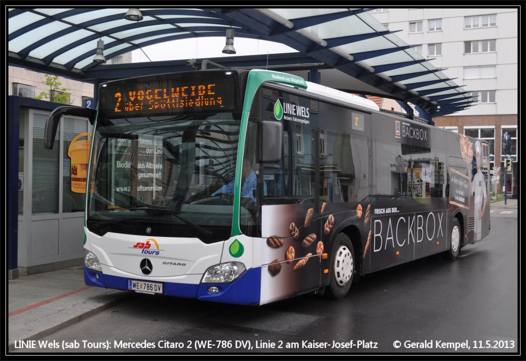 OrientationHorizontal (normal)Dateigröße176306Breite800Höhe540 - [stvkr-a-fotos] [WE] SABtours Linie Wels: Citaro G [4/5]