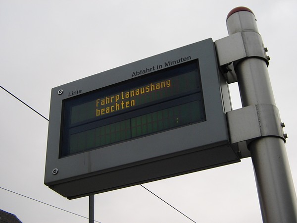 CameraCanon PowerShot A590 ISExposure1/160sExposure ModeAutoFlashFlash did not fire, auto modeFocal16mmMakeCanonOrientationHorizontal (normal)Scene ModeStandardWhite Balance ModeAutoCCD Width1mmF-Number45/10Metering ModeMulti-segmentDateigröße53581Breite722Höhe615 - [stvkr-a-fotos] [W] Linien 1A, 2A, 3A geänderte Linienführungen - Bilder - Teil 1