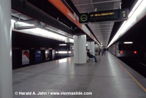 eingleisig über den Verbindungstunnell zur U3 Landstraße abgelenkt, die