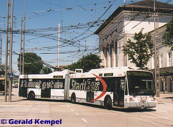 Es zeigt den 0061 im Einsatz auf der Linie 51 direkt vor dem Hauptbahnhof.