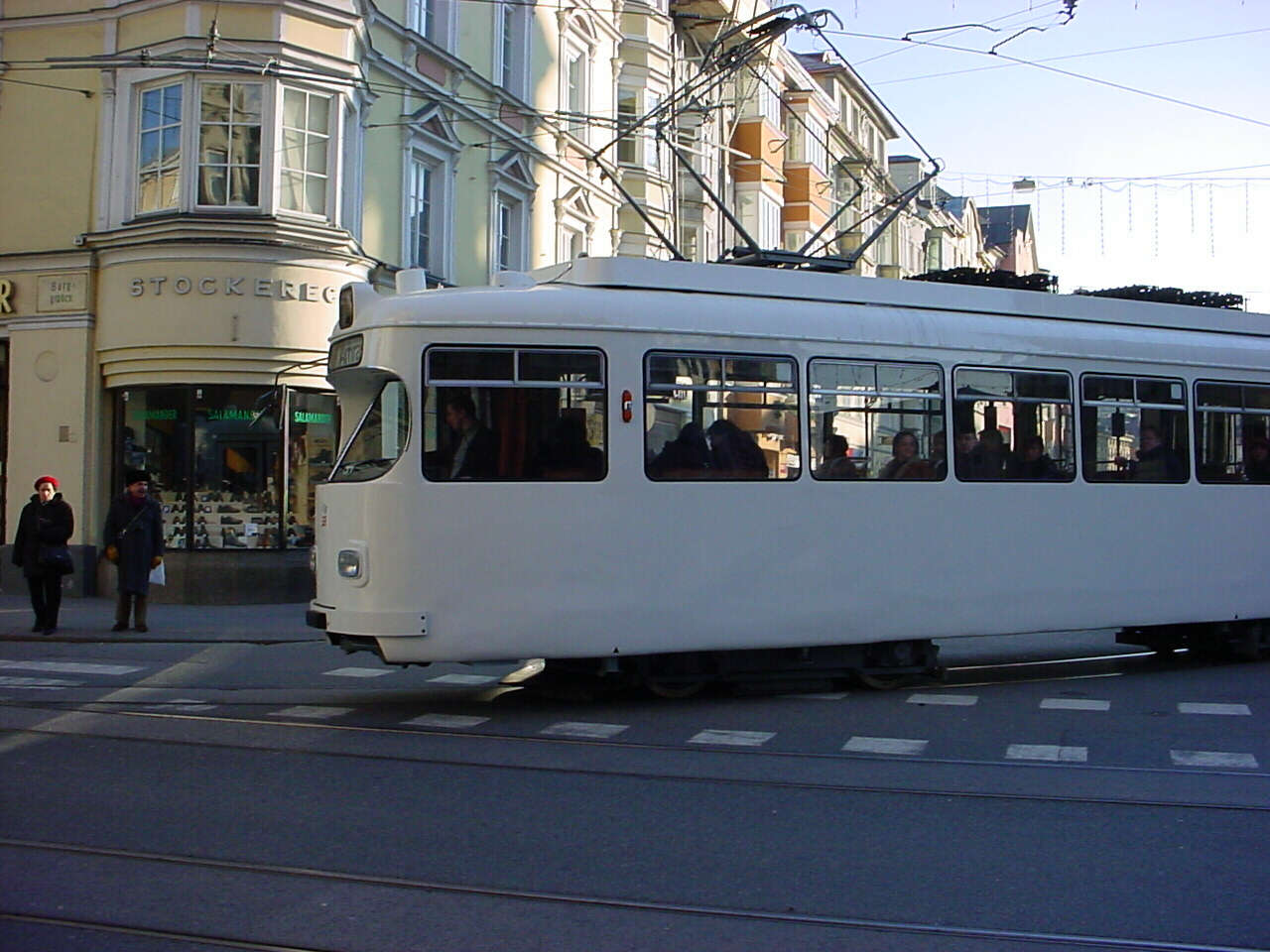 Tw 3X biegt von der Maria-Theresien-Strasse in den Marktgraben ein.