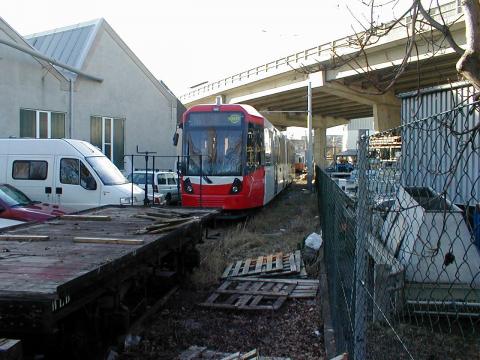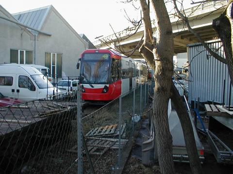 der K5000 in inzersdorf bei den wlb von der promende neben der liesing aus.