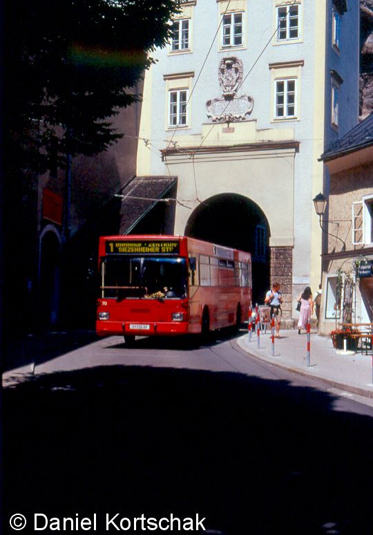 wiels gerade dazu passt, hier noch ein paar Bilder von der Linie 1. Als ich Ende Juli in Salzburg war, fuhren neben den Steyr-Obussen auch einige Dieselbusse auf den Ringlinien.