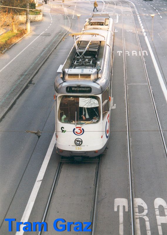 TW 510 vor der Bahnhofunterführung in Richtung Wetzelsdorf fahrend.
