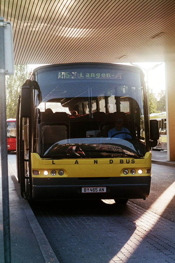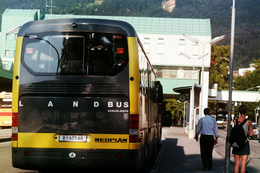 die drei euroliner-fotos zeigen einen privaten neoplan euroliner im auftragsverkehr der post, linie 25 richtung hittisau