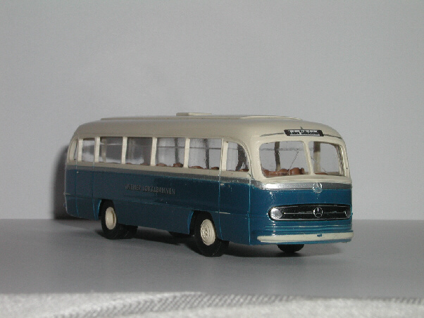 Bild 2 zeigt den Mercedes O321H, hergestellt von Brekina, betafelt als Linie