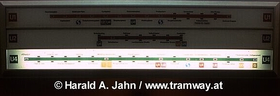 Seit der U3 Vergangenheit: die hinterleuchteten Linientafeln über der