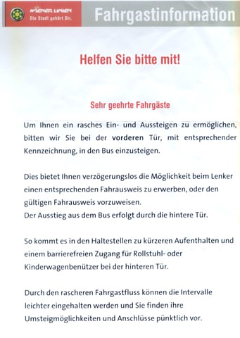 welche Tür man zum Ein- oder Aussteigen benützen darf.