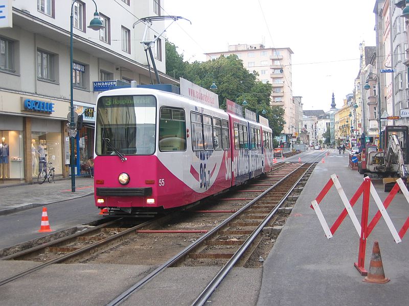 Sonnensteinstraße eingestellt. Am Bild TW Nr. 55 kurz
