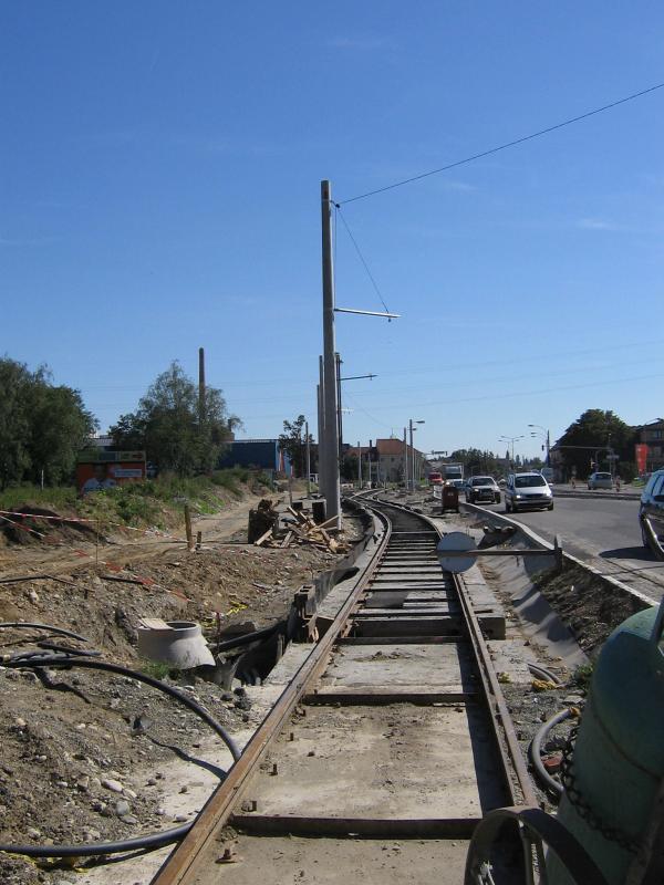 Bim (Haltestelle Brauhaus, hinten unten wo die Masten rauswachsen) in