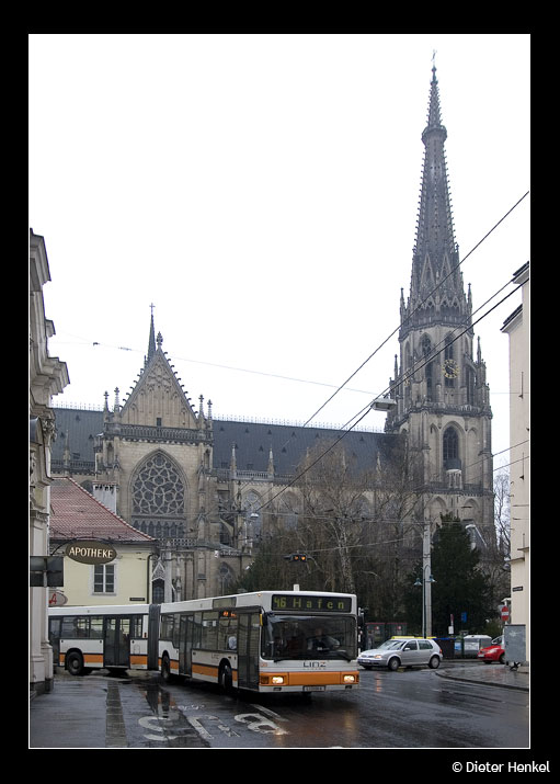 Bei der Kirche der Barmherzigen Brüder biegt ein O-Bus der Linie 45