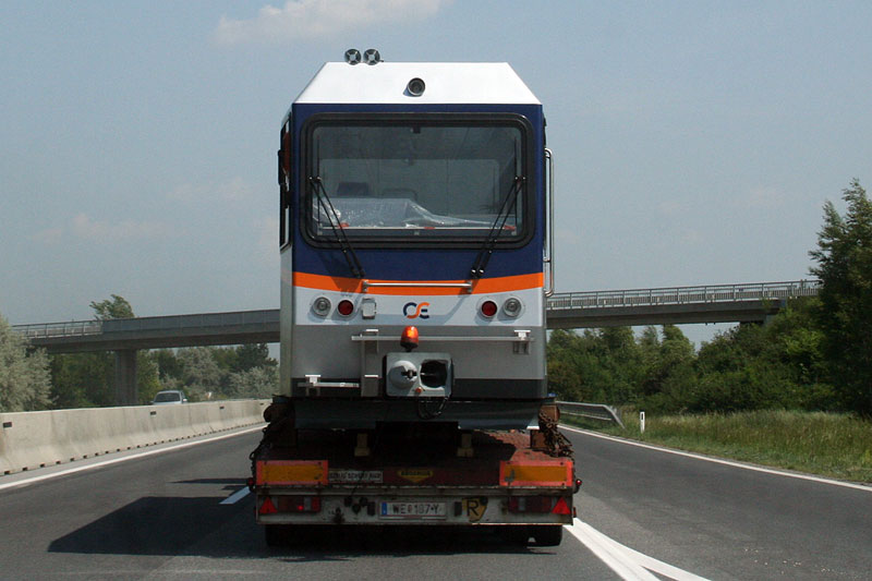 Am Samstag sah ich folgendes Schienenfahrzeug auf der A4. Weiß jemand woher und wohin das kam/ging?