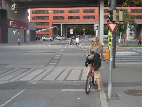 Eine wild bemalte Kreuzung (Dresdner Straße). Soweit ich die Gesetzeslage