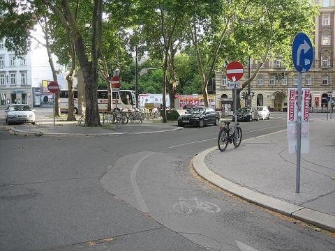Auch ein typischer im Nichts endender Radweg: die Boltzmanngasse. Die Straße