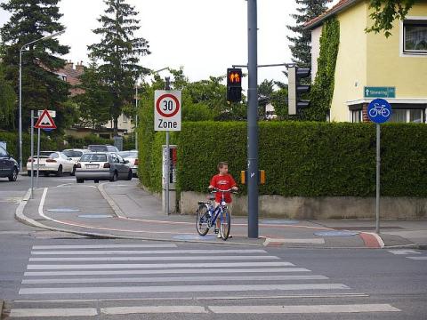 Fußgänger (Bild 1). Dass man eine kaum fahrbare scharfe Kurve eingeplant hat